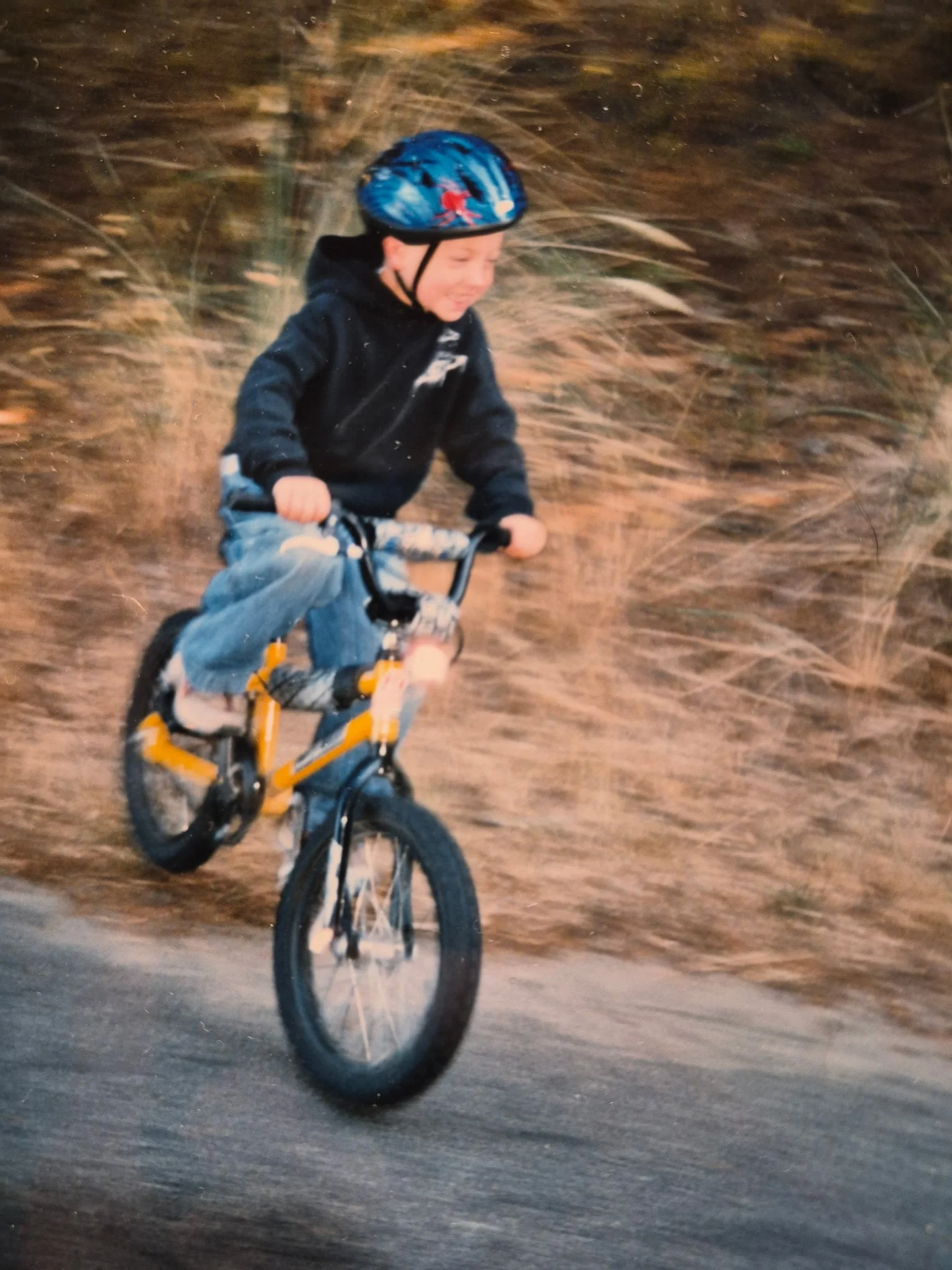 Samson age 4, riding his “big kid bike” for the first time. circa Dec. 2001.