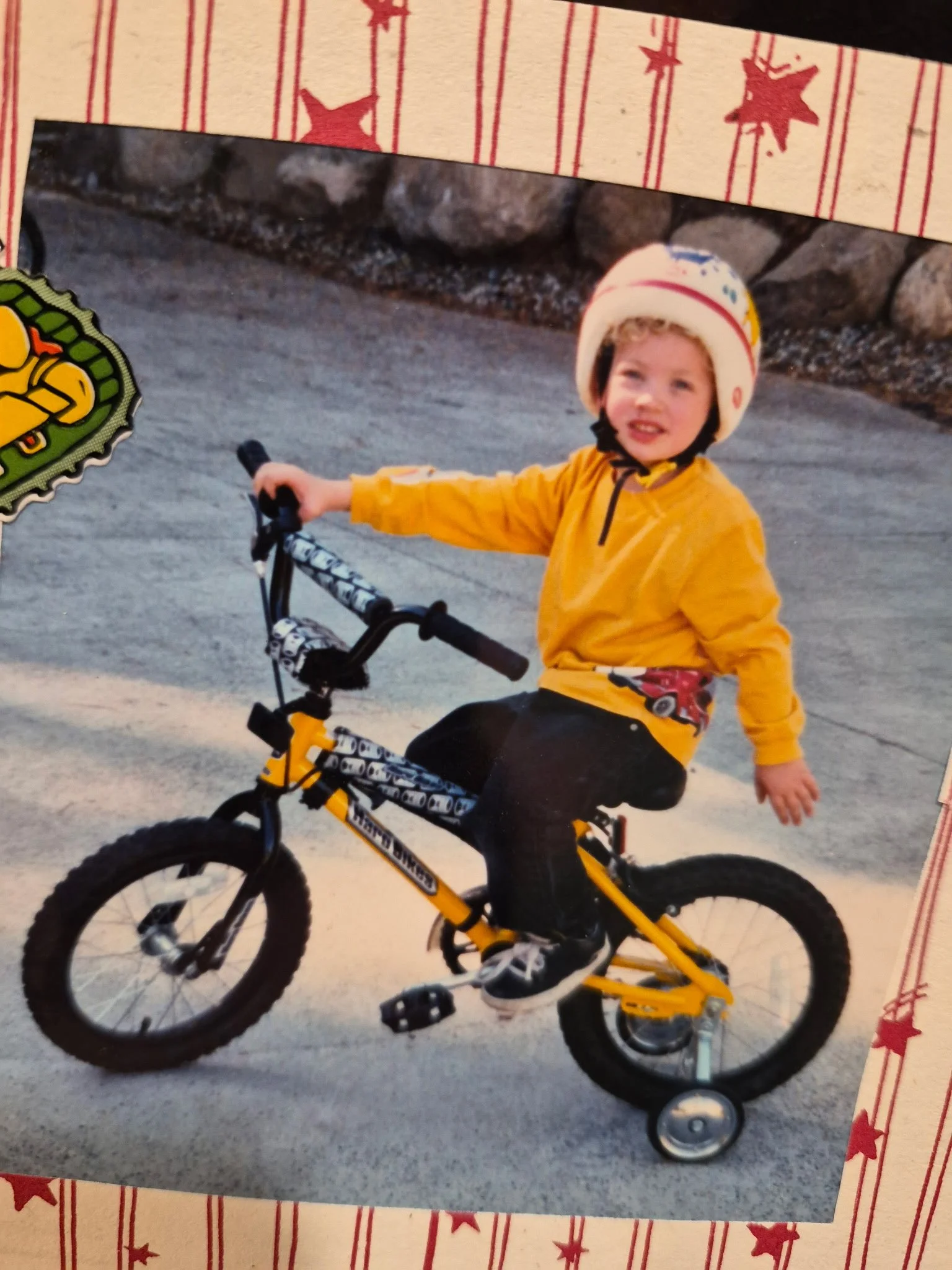 I wasn't too hasty to learn how to ride it without the training wheels, I wouldn't say I was cowardly, because I was 4 and 5, but I would say that I was a cautious child. Which could be correlated to a natural intelligence and understanding of the danger of the world. It also could have been that my dad was a Shane McConkey level sender when it came to anything that you could hurt yourself while doing. So watching him huck himself off of most cliffs while skiing or going way too big on his homemade bike jump over the bonfire made me understand that you should sometimes, look before you leap. Which may or may not have had an effect of me looking far too long and leaping too late during my childhood. Example one being training wheels.